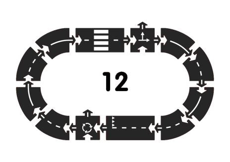 Byg din egen ringvej med dette 12-delte bilbane sæt. Bilbanen er lavet af holdbart og fleksibelt gummi, hvilket gør den velegnet til både indendørs og udendørs leg. Børn kan samle banen, som de ønsker, og den kan blive op til 170 cm lang.