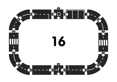 Byg din egen racerbane med denne 16-delte bilbane. Banen er lavet af holdbart og fleksibelt gummi, så den kan bruges både indenfor og udenfor. Dit barn kan samle banen, som det ønsker, og den kan blive op til 258 cm lang.