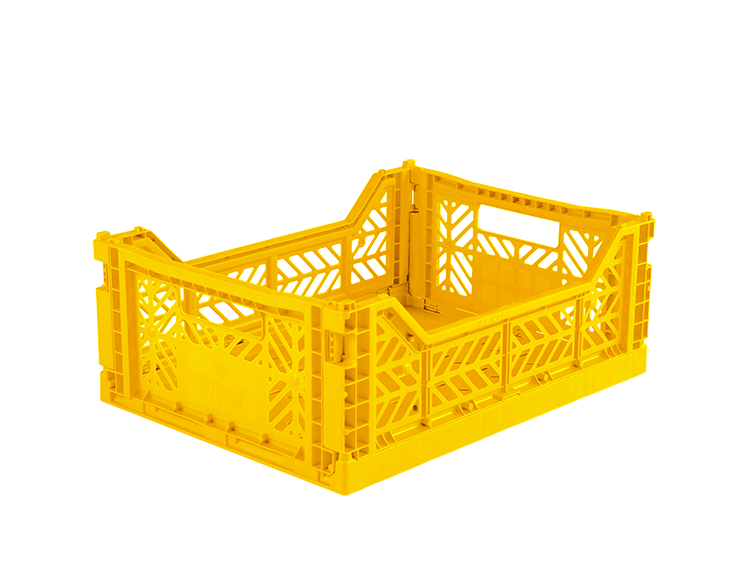 Aykasa midi sammenklappelig kasse i gul, ideel til hjemmet med moderne og funktionelt design. Kan stables for pladsbesparelse. Måler L40xB30xH14 cm, lavet af genanvendelig PP-plast. Skaber en flot og frisk atmosfære med sin gule farve, som fremmer glæde og energi. Perfekt til organisering, hverken for stor eller for lille, og kan stå fremme på grund af sit stilfulde design. Leveringstid ca. 14 arbejdsdage.
