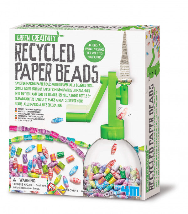 Setet här från 4m ger massor av skoj och familjetid! Ha kul att göra dina egna papperspärlor. Du behöver bara använda remsor av återvunnet papper från till exempel tidningar eller tidskrifter, stoppa in det i enheten och vrida på handtaget.