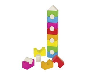 Superfint torn från Goki med regnbågens färger. Tornet är tillverkat av trä och utmanar ditt barns kreativitet och hand-öga-koordination.