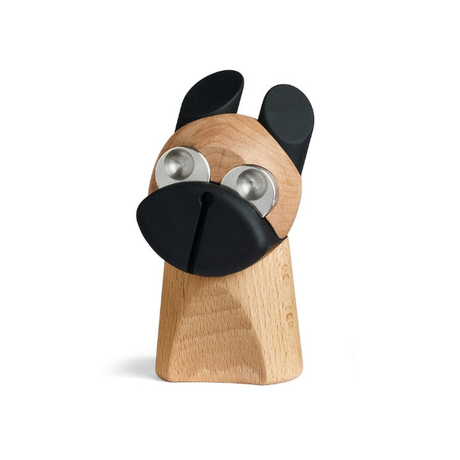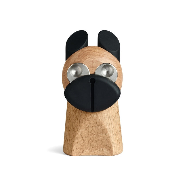 Söt hund från den välkända sagan "Fyrtøyet" av H.C. Andersen - den har ögon stora som Rundetårn och den kan ändra sitt uttryck genom att vrida eller vrida på huvudet. Hundens ögon är här gjorda av rostfritt stål. Superfin som dekoration i barnrummet eller i hemmet. Den kommer i en fin kartong, så den är perfekt som t.ex. doppresent. Hunden är gjord av miljövänligt gummiträ.