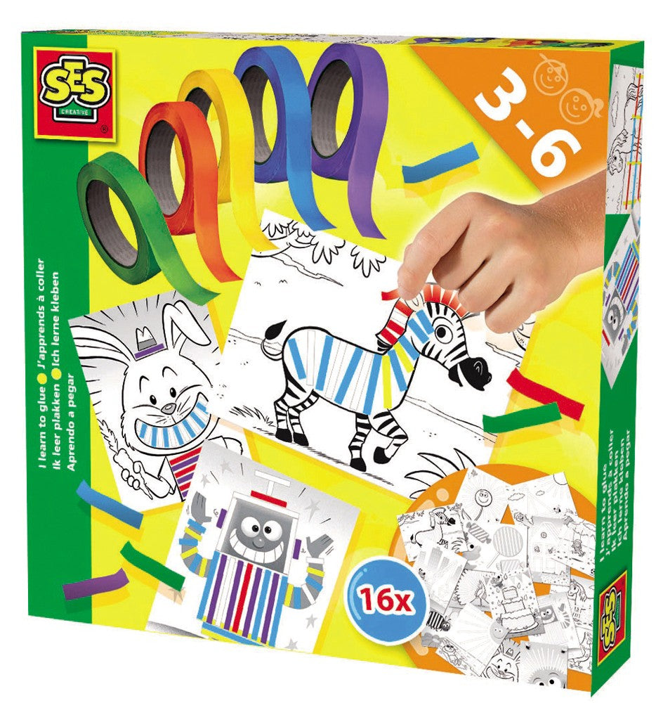 Nu kan den lilla lära sig att sticka. 16 ark och 5 olika färger på tejp ingår som du kan sätta på dessa ark med motiv.