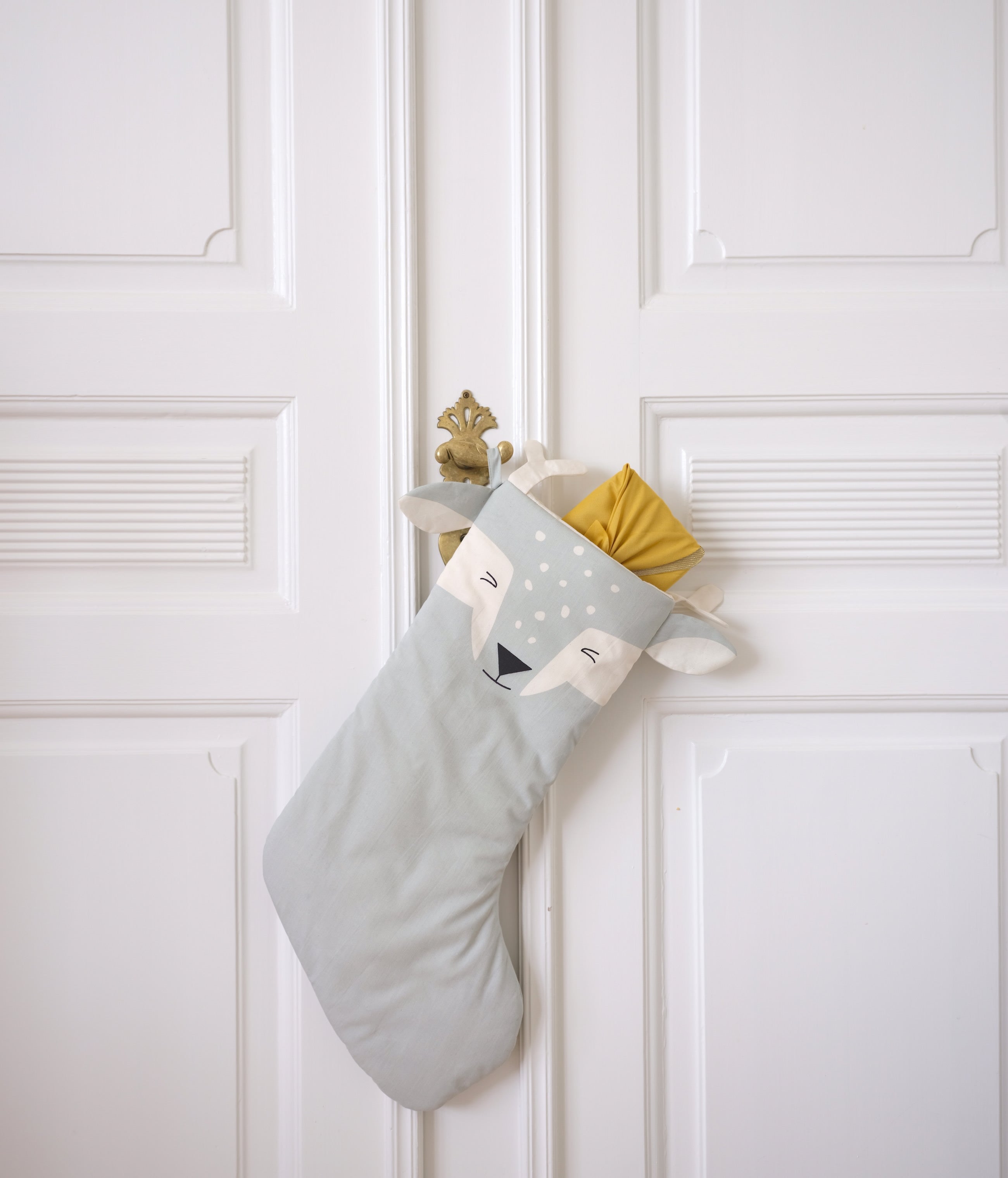 Bedårande julstrumpa från Fabelab, som föreställer en söt hjort/ren. Perfekt till julen när tomten kommer med kalender och/eller adventspresenter.