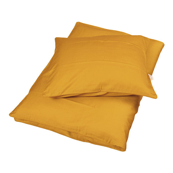 Filibabba Junior Sengetøj - Golden Sennep. Lavet af 100% økologisk bomuld, måler 140 x 100 cm. Blødt og behageligt sengetøj i en flot gul farve, der passer til både drenge og piger. Sættet inkluderer dynebetræk med lynlås, pudebetræk og matchende stofpose. GOTS-certificeret, hvilket sikrer bæredygtighed og frihed fra skadelige stoffer. Let at vaske og kan tåle tørretumbler.