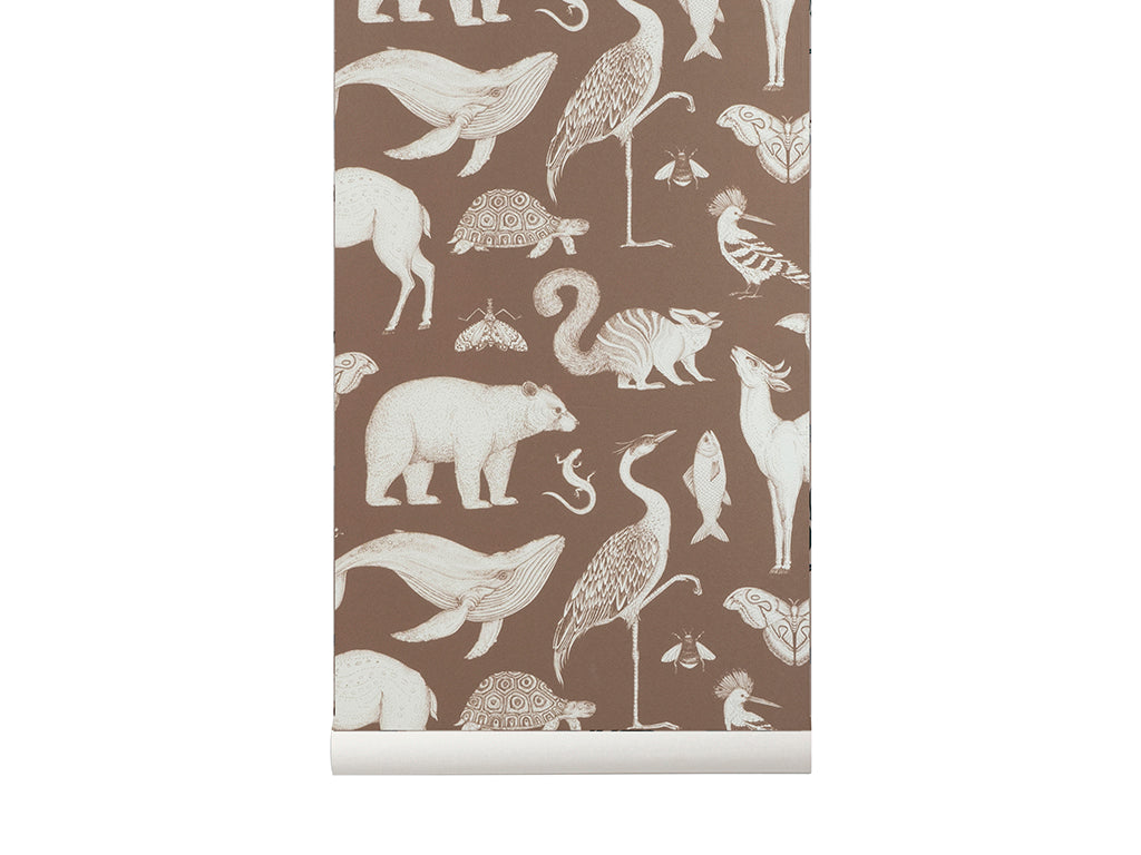 Smuk tapet fra Ferm Living med dyremotiv i en dejlig brun og karamel farve. Målene er 53 cm bredde og 1000 cm højde.