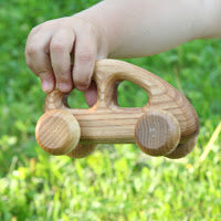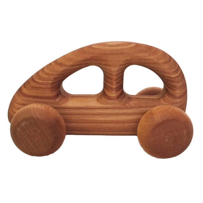 Liten handgjord träbil. Den är tillverkad i ekologisk ask och behandlad med ekologisk olja.