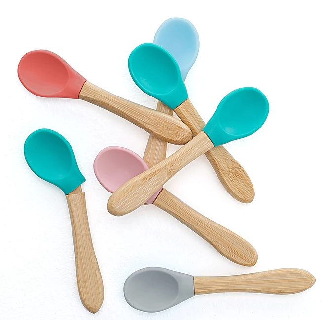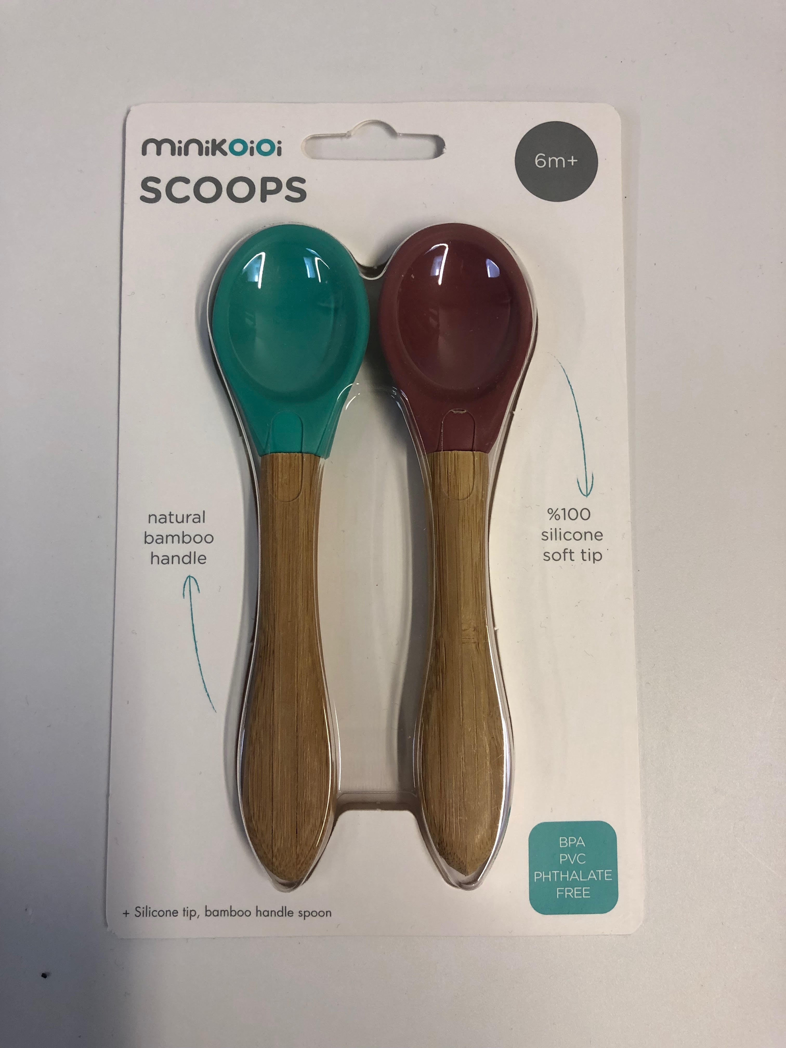 Minikoioi ske med bambushåndtag, Grøn og Rosa, 2 stk.