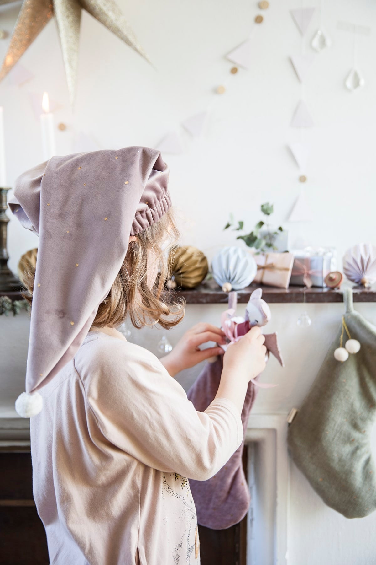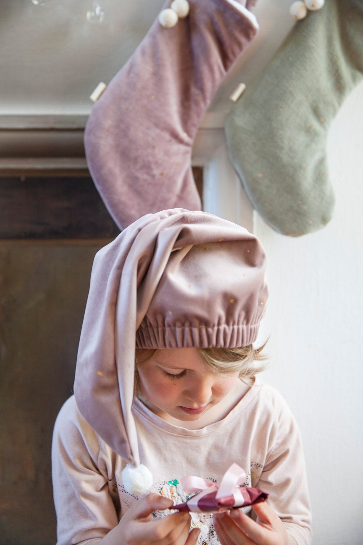 Nu är det jul igen! Och så måste såklart de obligatoriska huvudbonaderna på igen – och det gör så klart inget att det är lite extra snyggt. Denna tomteluva från Fabelab är fantastiskt fin och i en läcker velourblandning och med guldprickar och dessutom är den mjuk som smör och skön att ha på sig.