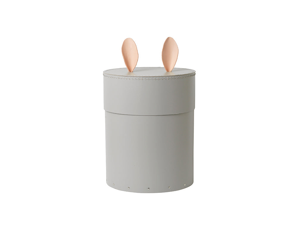 Sød opbevaringskasse med kaninører fra Ferm Living. Ideel til at opbevare legetøj, tøj eller andre ting i børneværelset.