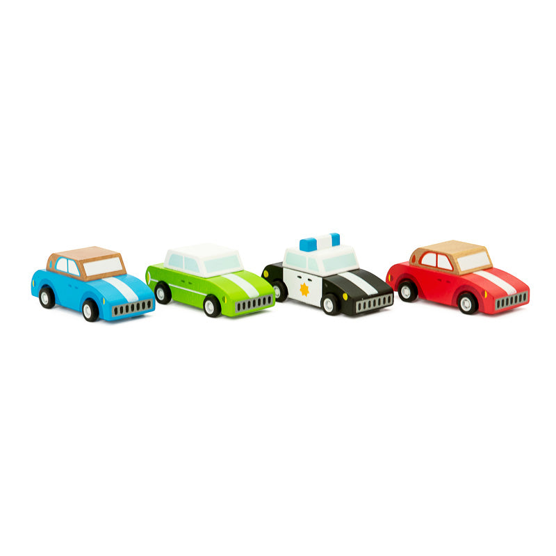 Kul bil fra Mamamemo, der bevæger sig, når den trækkes tilbage. Den har en størrelse på 9 x 4 x 3,7 cm.