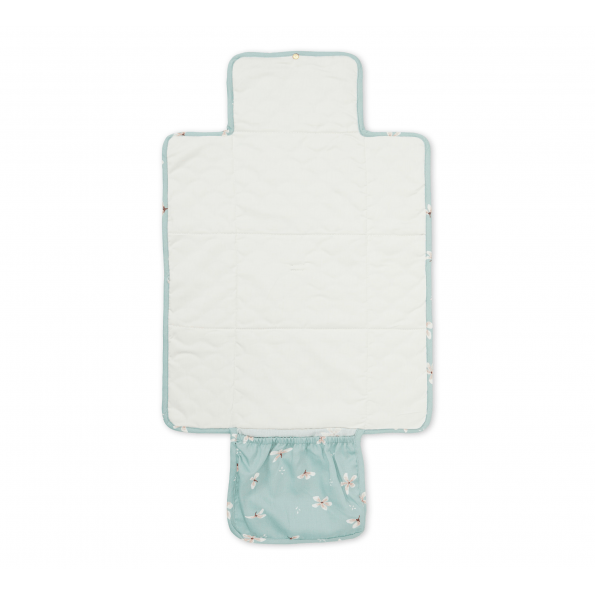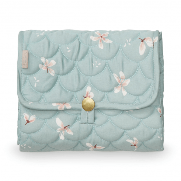Denne quiltede stellematten i blått er både praktisk og stilig. Laget av myke, slitesterke materialer, gir den en komfortabel og trygg overflate for bleieskift. Den kompakte designen gjør den enkel å ta med seg, og den er lett å rengjøre, noe som gjør den ideell for både hjemmebruk og på farten.