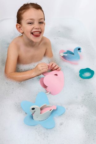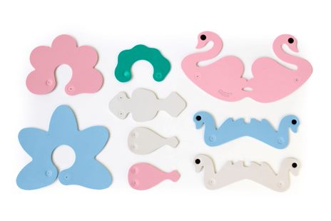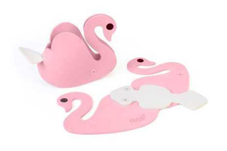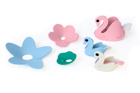 Byg din egen svansjö i badet med Quutopia. Voksne svaner og to svanunge svømmer rundt blandt smukke vandblomster. Leken kommer fladt og kan nemt samles med et knapsystem. Når delene sættes sammen, opstår der søde figurer. Quutopia giver mange timers sjov i badet. Fremstillet af EVA-skum, uden BPA, latex og ftalater. CE-mærket og anbefalet til børn over 3 år.