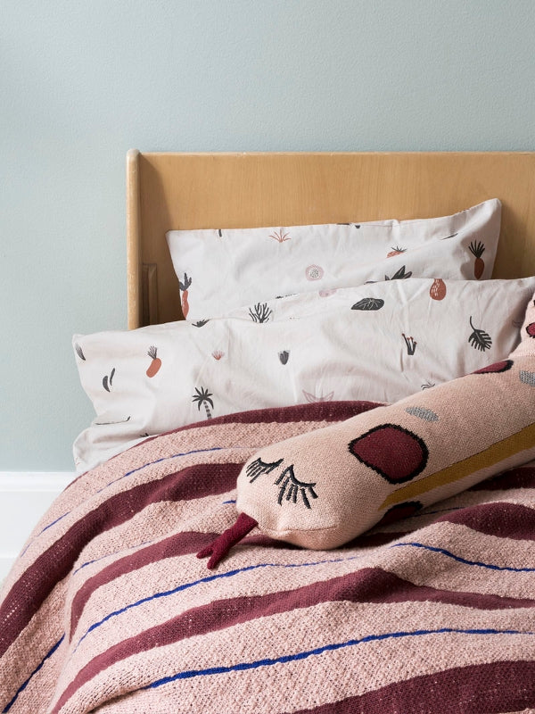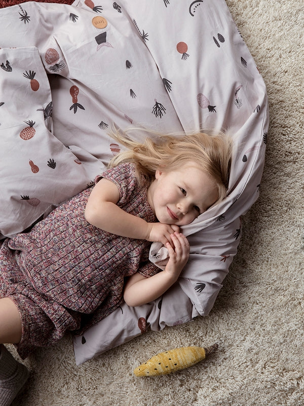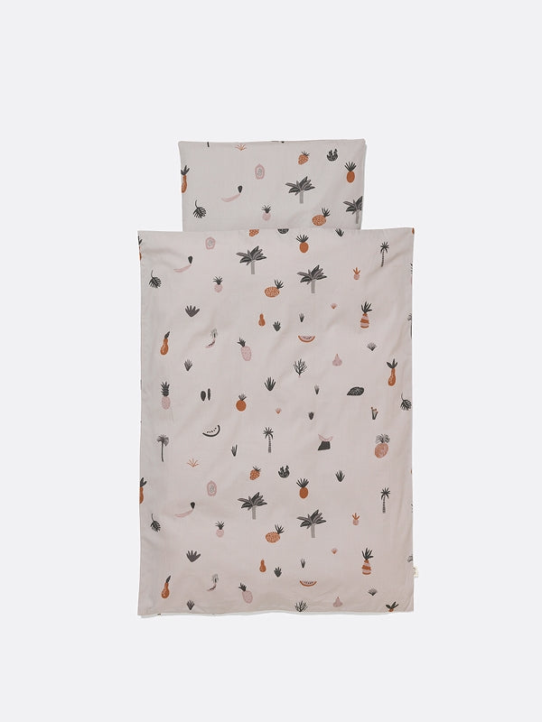 Disse lækre, økologiske sengetøj fra Ferm Living kan pynte børneværelset med deres smukke design, der viser forskellige eksotiske frugter, palmer og dyr. Sengetøjet måler 100 x 140 cm og 46 x 40 cm.