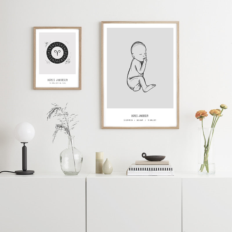 Få en personlig fødselsplakat med dine børns oplysninger, trykt og leveret til din dør. Plakaten er smuk og passer perfekt ind i børneværelset eller andre steder i hjemmet. Den kan hænges op alene, men vi anbefaler at bruge en A3-ramme til den. Størrelse: A3. Papir: Silke 135g (plakatpapir). Ramme: Ikke inkluderet. Udsigt: Lasertryk. Vær opmærksom på, at der kan være længere leveringstid for personlige plakater, op til 10 hverdage, da vores designere laver dem manuelt.