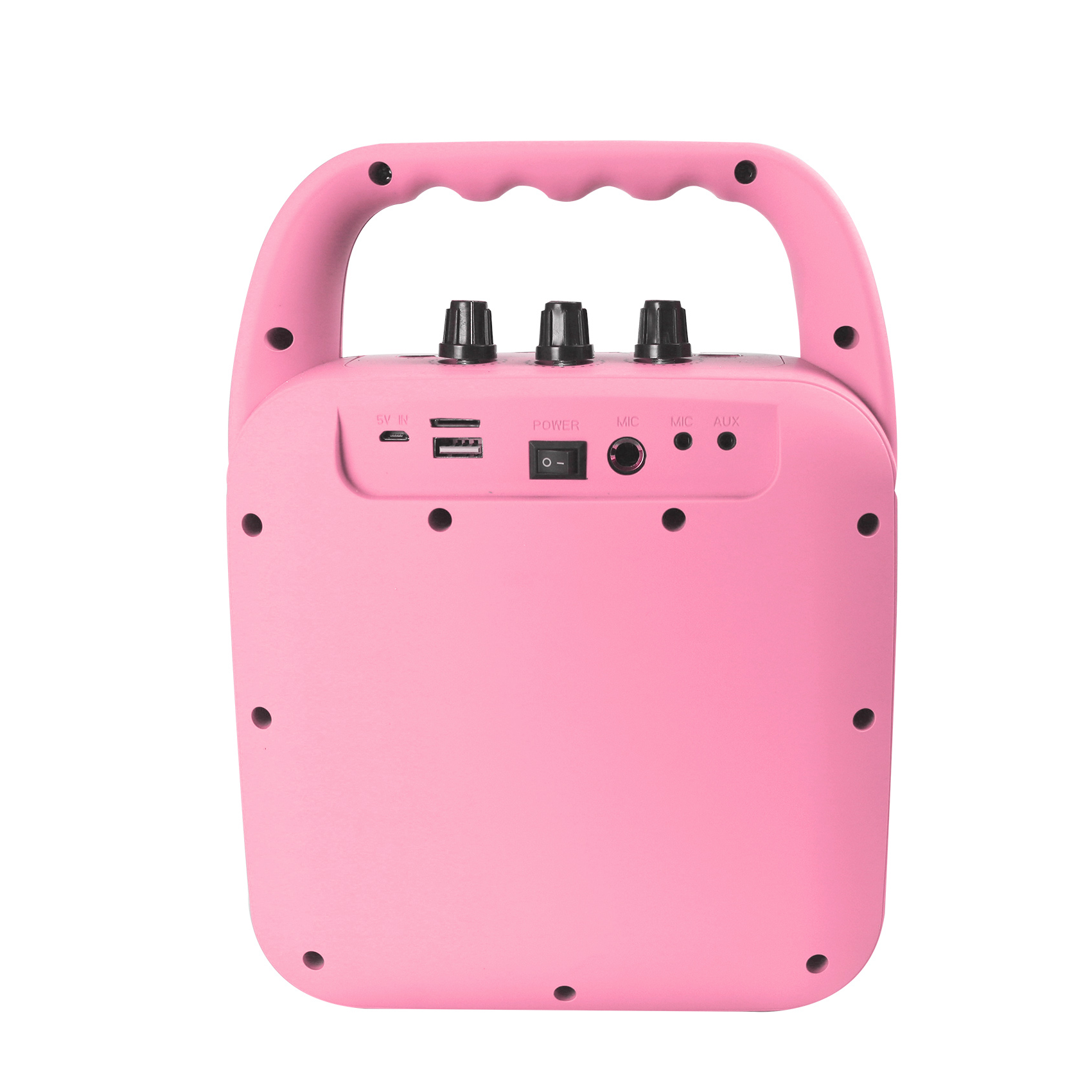 Högtalaren har ett snyggt utseende. Den rosa färgen ger rummet en fräsch look och fångar ögonen direkt. Dessutom gör det att man vill bara sjunga.