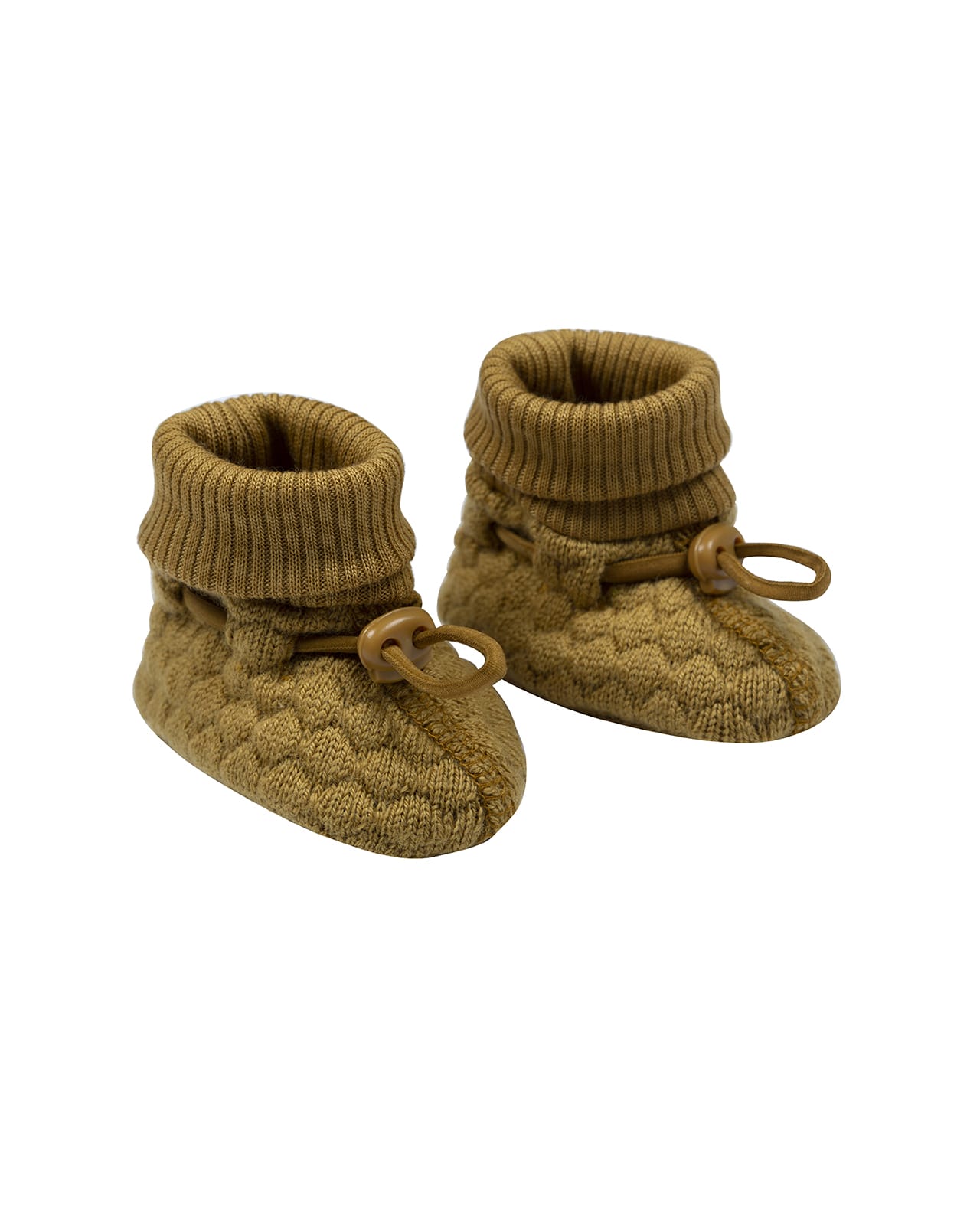 Disse smukke støvler fra Smallstuff er lavet af lækker Merinould og strikket i et flot mønster. Perfekte til at holde din babys fødder varme på kølige dage. Kan vaskes ved 40 grader, brug uldvask. Fås i størrelserne 56/62-92/98. STANDARD 100 fra OEKO-TEX®, testet for skadelige stoffer.