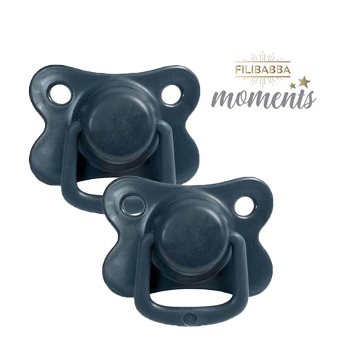 Nappar 2-pack til børn over 6 måneder i mørkeblå farve. Disse sutteflasker er bløde og behagelige at bruge, designet til at berolige dit barn. De er lavet af sikre materialer og har en praktisk form, der gør dem lette at holde. Perfekte til daglig brug og hjælper med at give dit barn tryghed.