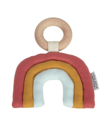 Denna fina träring är super multifunktionell då den både är perfekt som leksak, men även superfin som dekoration i barnrummet. På grund av träringens olika strukturer och det sprakande tyget som bildar den fina regnbågen kommer ringen här att stimulera och kontrollera ditt barns sinnen.
