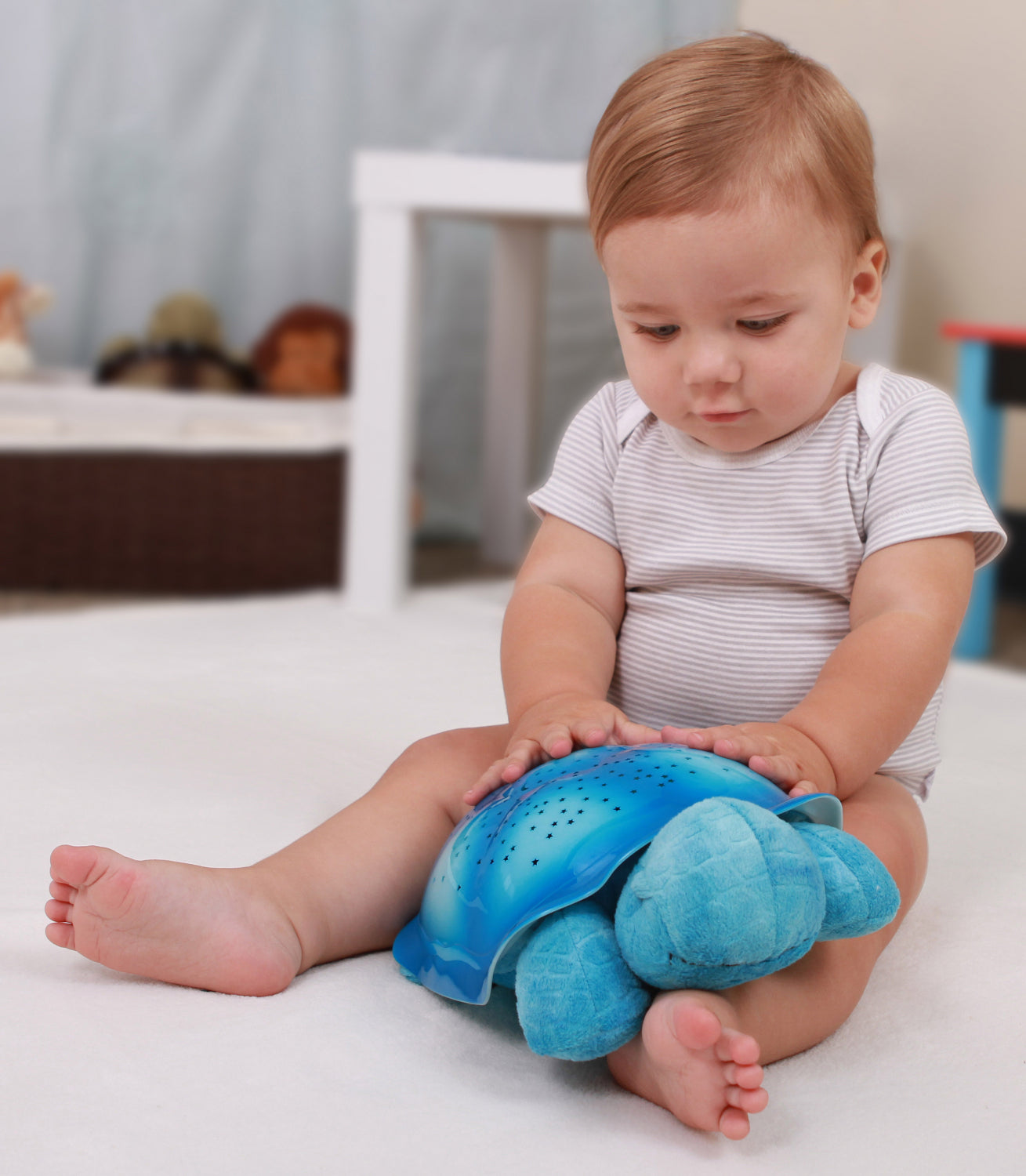 Söt nattlampa från Cloud B, som kan lysa upp barnrummet med gnistrande stjärnor. Lampan har en lugnande effekt på den lilla och ger trygghet på natten. Lampan fungerar även som en söt sovnalle, som kan ligga bredvid den lilla i spjälsängen.