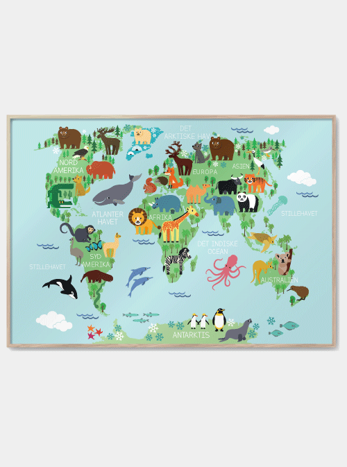 Verdenskart med dyr plakat, M (50x70, B2)