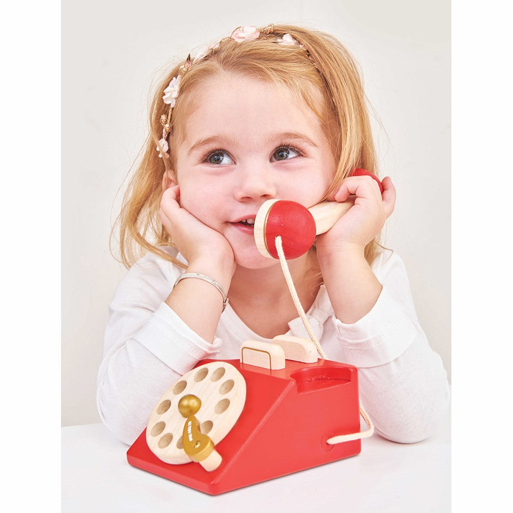 Supersnygg roterande telefon i snygg retrodesign från Le Toy Van. Använd telefonen för att utveckla ditt barns nummerigenkänning och inte minst för att utveckla ditt barns språkkunskaper.